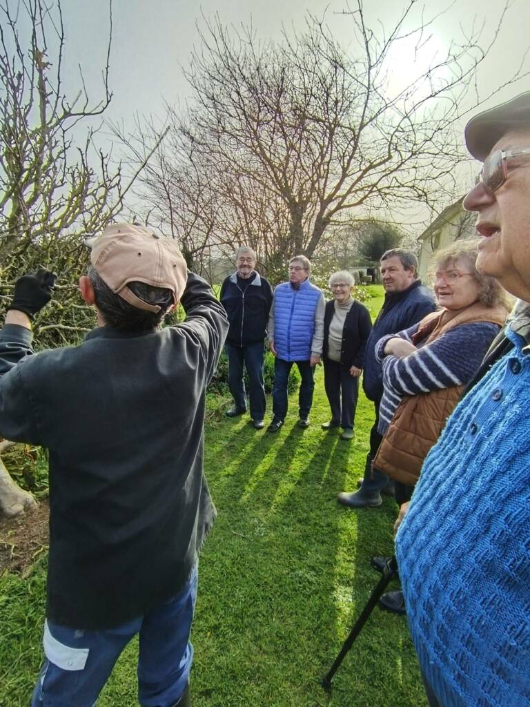 Jeudi matin 05 mars 2026, notre correspondant local et un de nos animateurs ont été chaleureusement accueillis chez M. et Mme FLEURY Yves, à Querqueville. 11 Personnes étaient présentes, sous le soleil, pour écouter attentivement les précieux conseils afin de s’exercer à la taille des arbres fruitiers.
