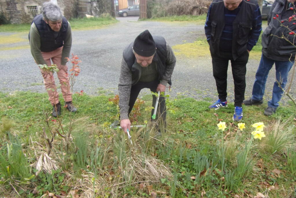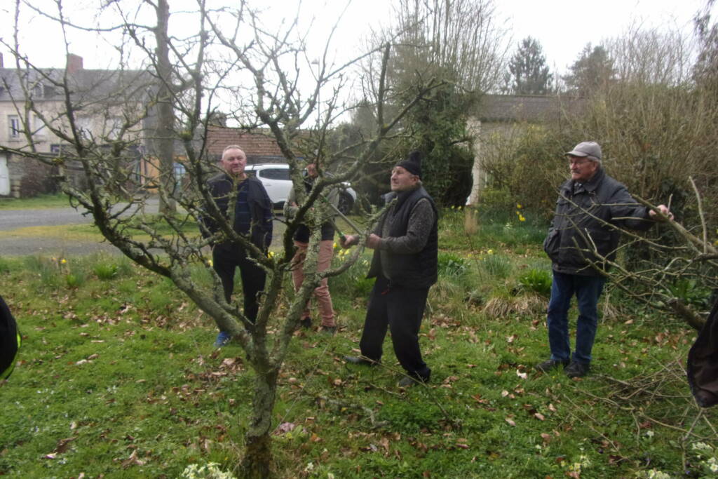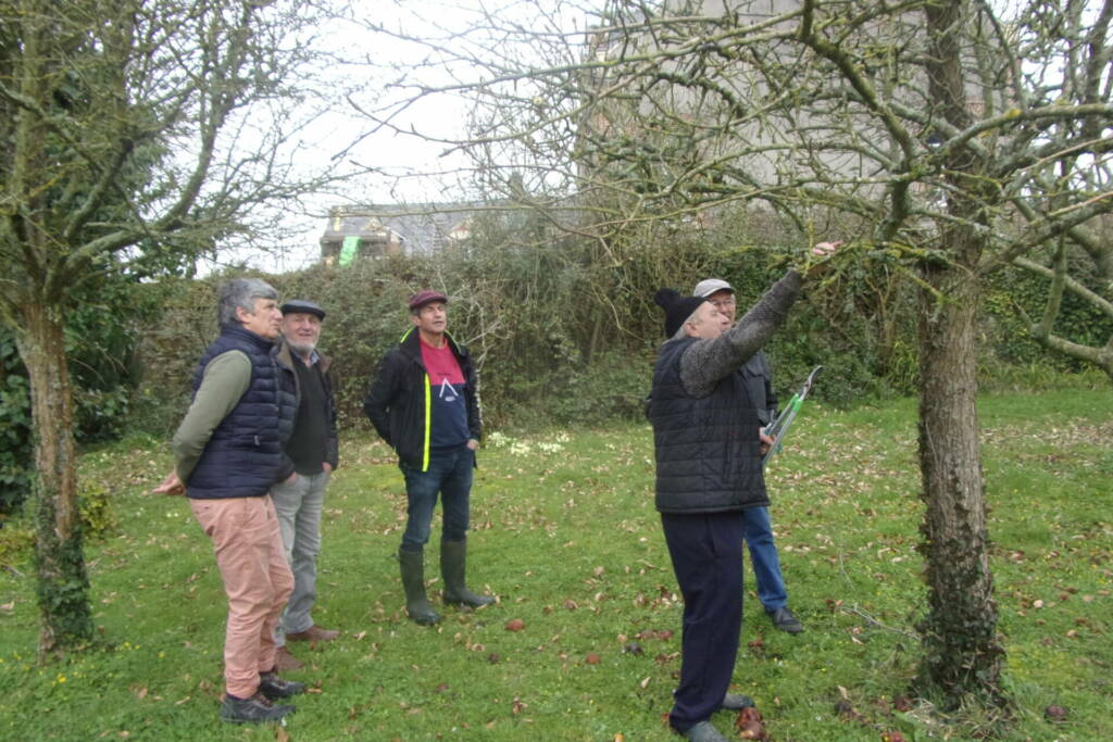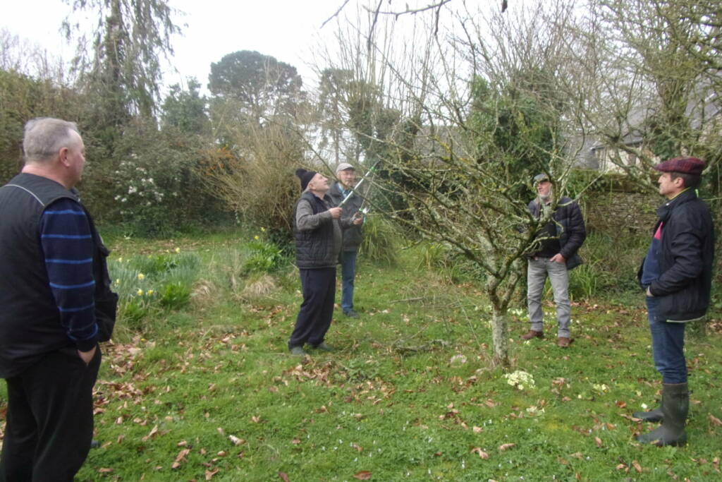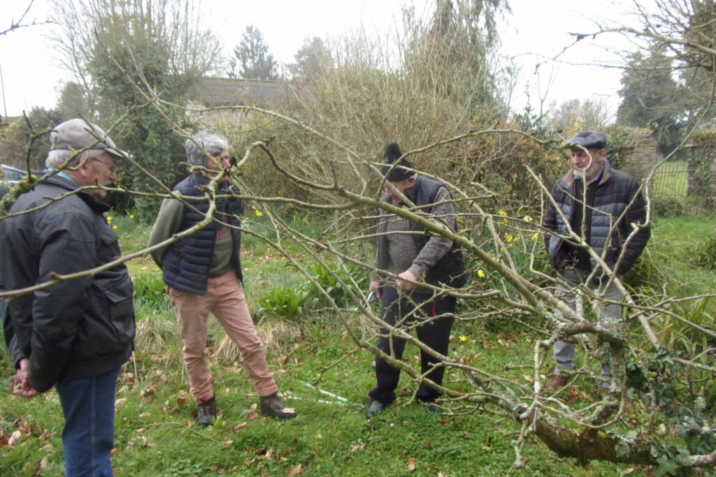 Atelier de taille des fruitiers et des rosiers au jardin du presbytère de Saint-Clair-sur-l’Elle le 7 mars 2026