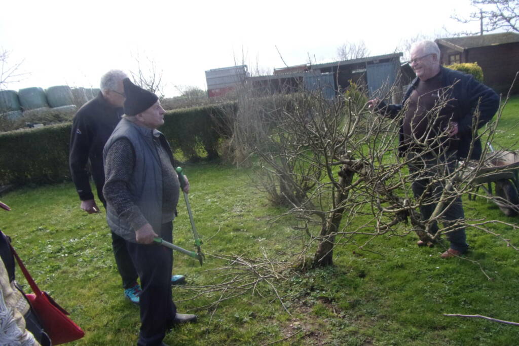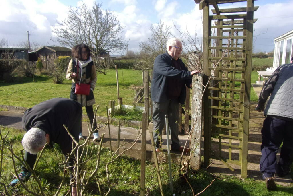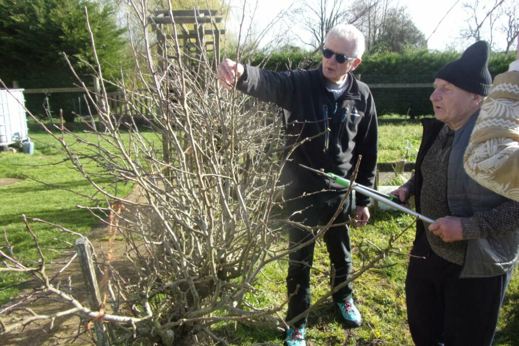 M. Michel MARIE, de Graignes, a accueilli une douzaine de personnes apprenties jardinières pour un atelier d’initiation à la taille des rosiers et des arbres fruitiers proposé par notre association.
